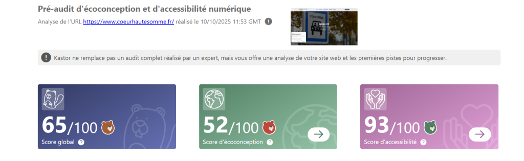 Un pré-audit d’écoconception et d’accessibilité numérique a été réalisé le 10.10.2025