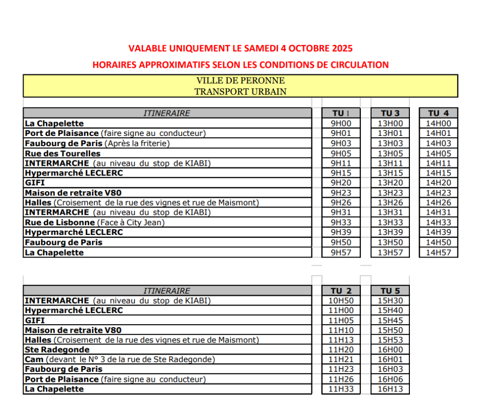 En raison de la foire Saint-Michel et en prenant en compte les arrêtés de la Ville de Péronne, l’arrêt « Parking École du Centre » ne pourra pas être desservi du mercredi 24 septembre 2025 au lundi 6 octobre 2025.